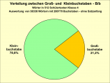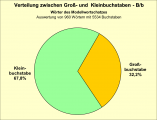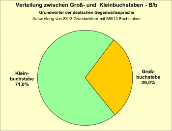 Unterteilt man die Gruppe der Wörter, die mit B/b geschrieben werden in Fremdwörter und Wörter, die den deutschen Rechtschreibprinzipien folgen (germanische Wurzeln, Lehnwörter) so zeigt sich eine etwa gleich häufige Verteilung (siehe Diagramm 10).