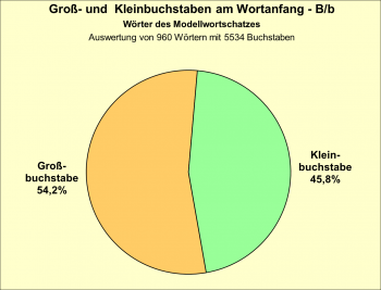 Diese Verteilung zeigt sich (in groben Zügen) auch bei der Auswertung des Modellwortschatzes (Wortanfang = 22 %, Wortinnere = 51 %, Wortende = 27 %) und dem Online-Wörterbuch (A = 10 %, I = 75 %, E = 15 %).