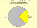 Zusammenfassung: Im Wortschatz der Grundwörter der deutschen Gegenwartssprache gibt es insgesamt 47.663 (=100 %) Buchstabenverbindungen. Eine Buchstabenverbindung mit dem Buchstaben D/d kommt insgesamt durchschnittlich oft vor (1.958 Verbindungen = 4,1%). Bei deutschen Wörtern liegt die Quote mit 4,04 % etwa gleich hoch.